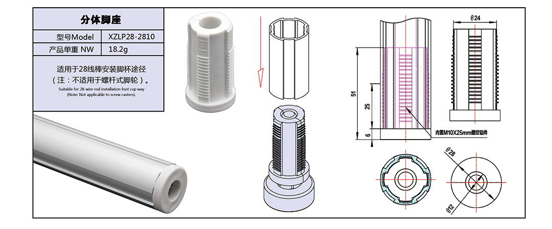 适用于28线棒安装脚杯用