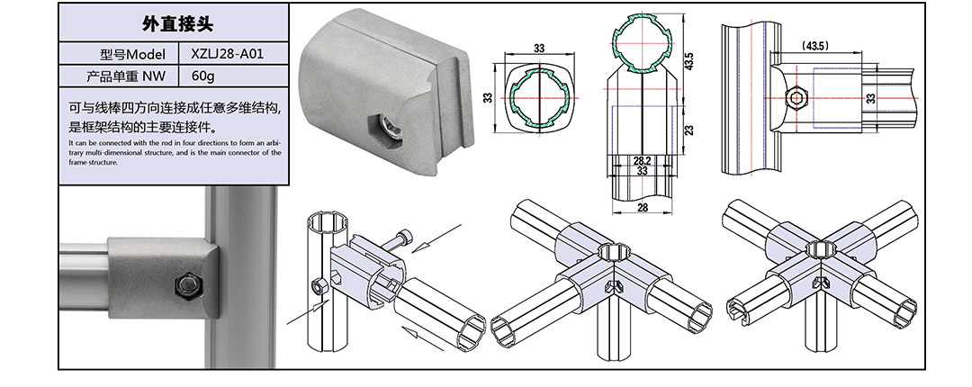 铝管接头 外直接头 XZLJ28-A01