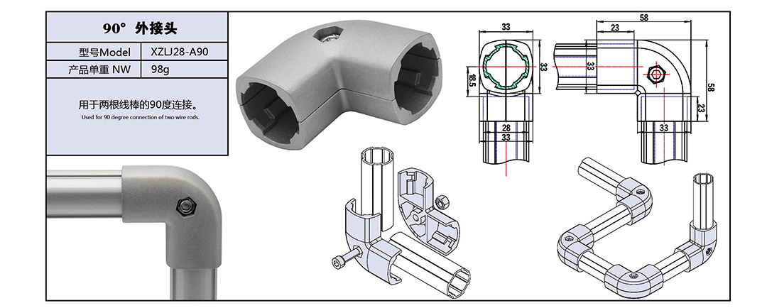 定制:铝管接头 90°外接头 XZLJ28-A90