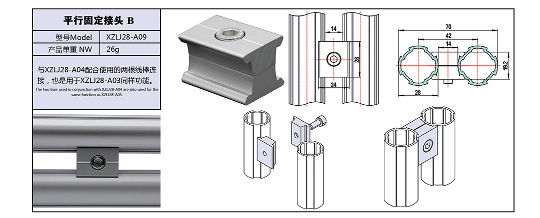 定制:平行固定接头B XZLJ28-A09