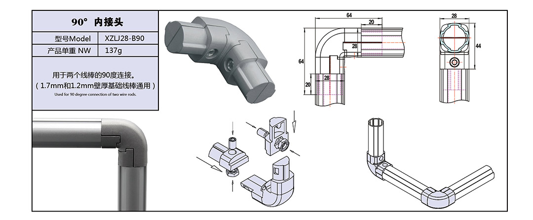 定制:90°内接头 XZLJ28-B90