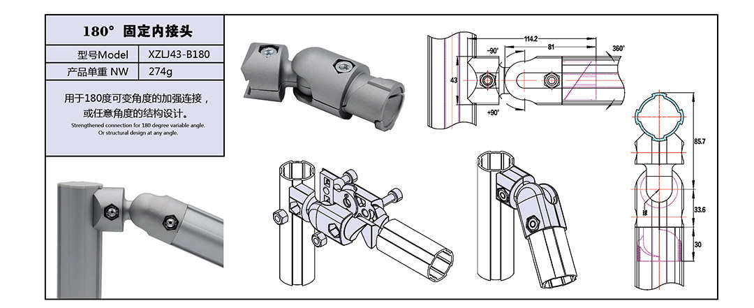 定制: 180°固定内接头 XZLJ43-B180